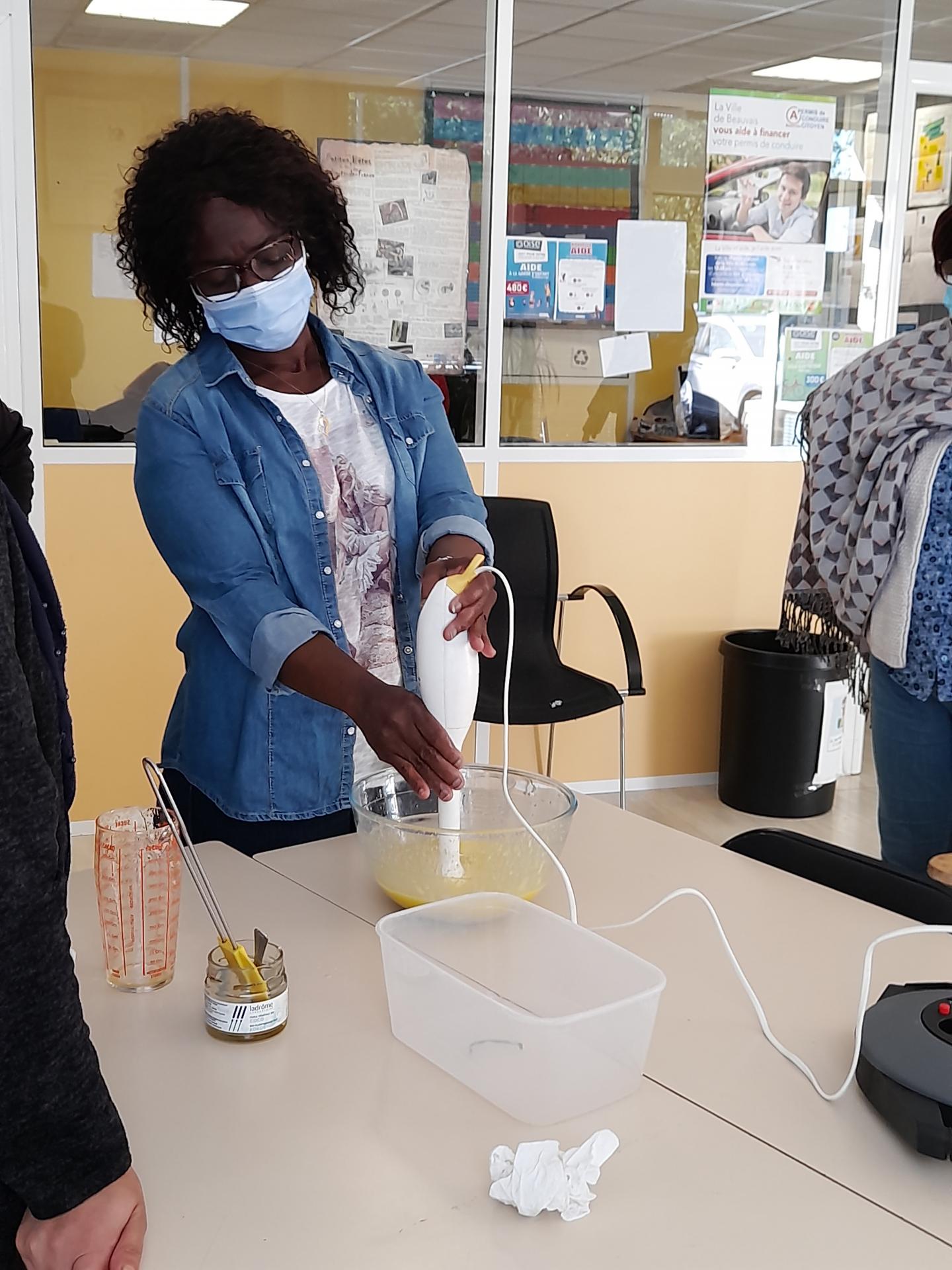 Au début du mois de mai 2021, à l'aide de l'acronyme anglais "DIY" (Do It Yourself), les stagiaires du dispositif "Se Former pour Lire, Ecrire, Agir de Beauvais ont navigué sur internet à la recherche de tutoriels permettant de réaliser de la lessive et du savon. Et, après avoir défendu et budgété le projet, ils se sont lancés dans la quête des différents ingrédients. Comparant les prix, priorisant les produits issus de l'agriculture biologique, recensant les points de vente spécialisés, les stagiaires ont établi un inventaire des matériels et ingrédients nécessaires à la réussite de ce projet ambitieux. L'adaptation de la recette à nos besoins a permis de mettre en évidence l'impérieuse maîtrise des produits en croix pour ajuster les quantités. Le planning a dû être pensé et anticipé pour programmer cette action qui doit respecter des étapes cruciales de la réalisation de la recette. La sécurité a aussi fait l'objet de recherches sur les EPI et d'une grande vigilence lors de la manipulation de la soude caustique.